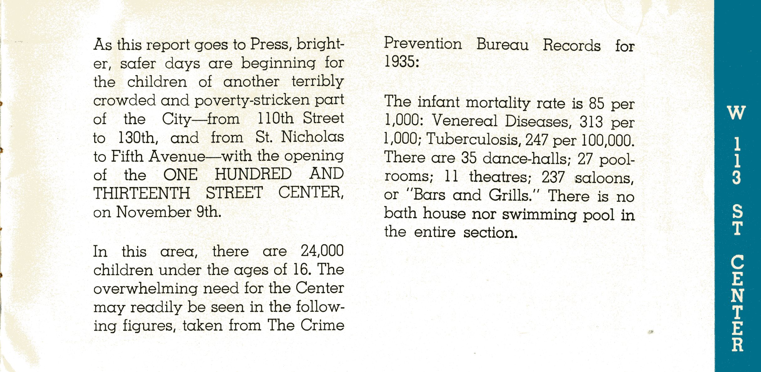 Booklet from Boys' Athletic League titled, "Boys' Athletic League Inc./ Annual Report". Booklet contains overview of organization, of activities, of "Christmas joys", of Washington Street Center, of Camp Sebago, of 657 Tenth Avenue, of W 113 Street Center, and of the president's message. Includes photographs of activities as well as list of officers and board of governors. See following entries for other pages: "Booklet, Boys' Athletic League, 1936 p.1.tif" to "Booklet, Boys' Athletic League, 1936 p.18.tif" and "Statement, Boys' Athletic League, August 31, 1936.tif"