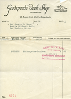 Receipt from Goodspeed's Book Shop to George B. Dorr for "Shakespeare Lexicon". Shipped to Dorr's Acadia National Park address. Dated January 1, 1937 and paid on January 25, 1937.