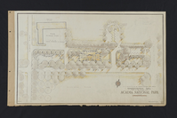 Hand colored architectural plan for the park's administration area in Bar Harbor titled, "U.S. Department of the Interior National Park Service Administration Area Part of the Master Plan Acadia National Park". Plan depicts the layout of the proposed building, parking lots, and garage. Including street names and property lines. The following information is from captions written on the document: "Building List/ No. Name/ 30 Park Headquarters/ 31 Naturalists office/ 32 Rangers office" text is written in tabulated format. ; DWG. NO. NP-ACA-2661