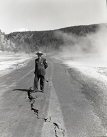 This photograph shows the damage to Firehole Lake Loop Road near Black Warrior Springs from an earthquake that occurred on August 17, 1959.