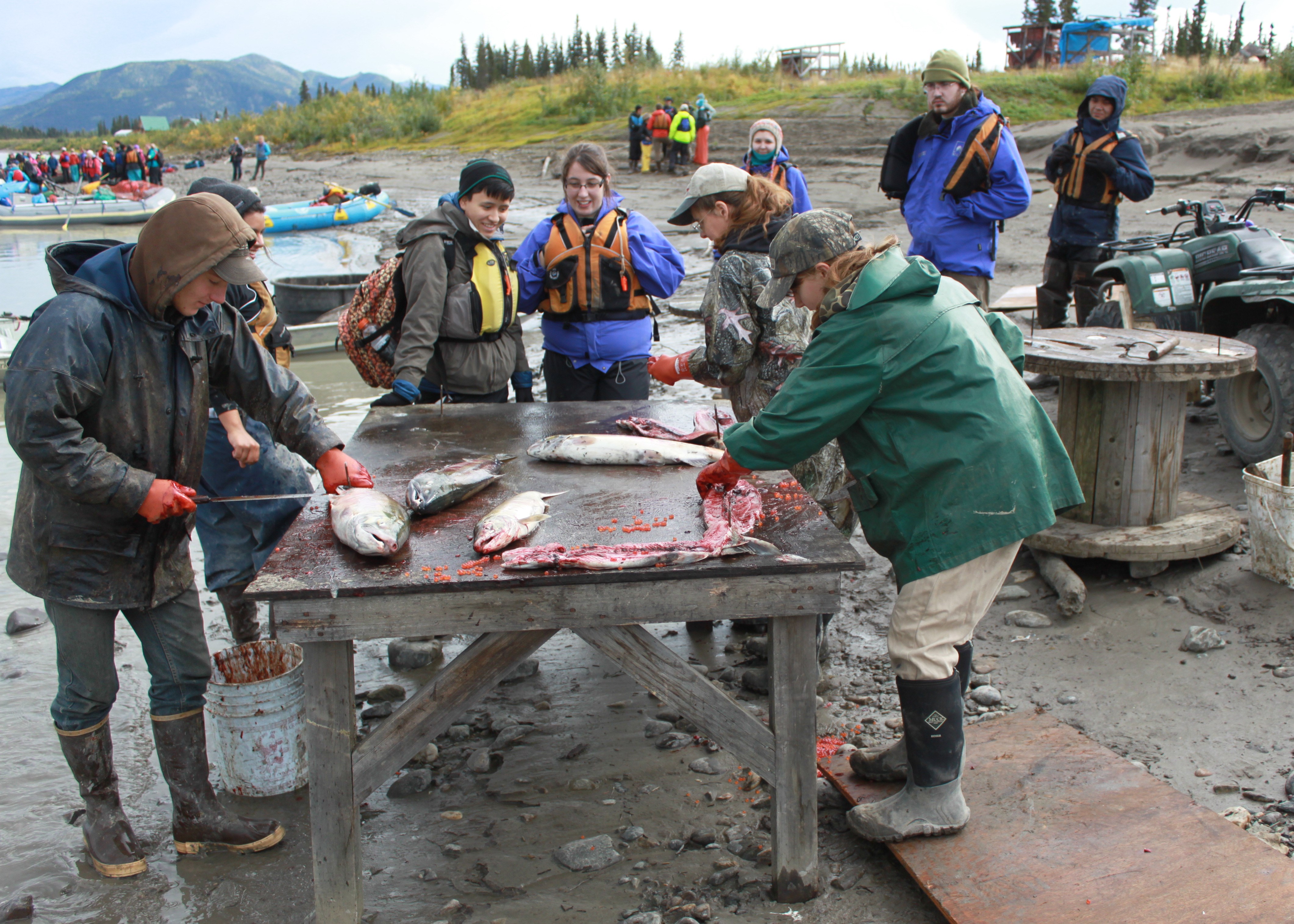 Alaska Pacific University students help process salmon with local subsistence users