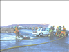 Firefighters fight vehicle fire involving two vehicles in simulation of a broadside collision during training at Mesa Verde National Park in 2001.