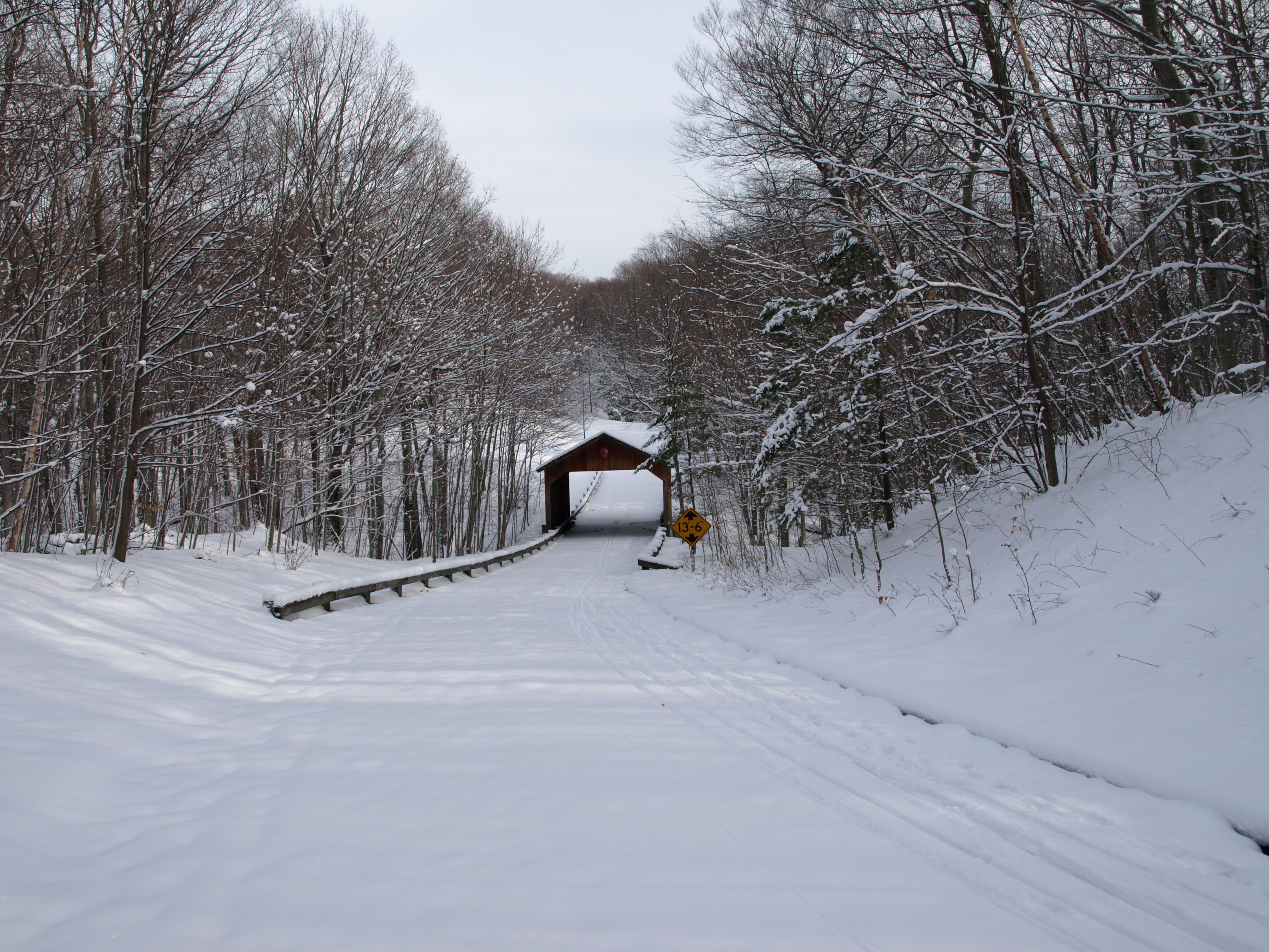 Snow on Covered Bridge on Pierce Stocking Scenic Drive