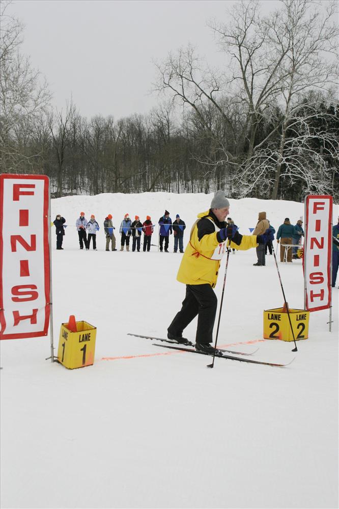 Athletes compete in cross-country skiing events at Brandywine Ski Resort in Cuyahoga Valley National Park. These pictures feature the athletes at the finish line. || 2007 was the 25th anniversary of Cuyahoga Valley National Park and Special Olympics Ohio partnering to offer the Ohio Winter Special Olympics. Skiing events are held within the national park. Ice skating events are at Kent State Ice Arena. Special Olympics is an international organization dedicated to empowing individuals with intellectual disabilities to become productive, physically fit, and respected members of society through sports training and competition.