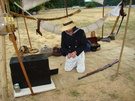 David Funk of Burnaby, British Columbia, readies his kit for the black powder deomnstration at Encampment 2008