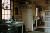 The Maltese Cross Cabin's kitchen with period furnishings.