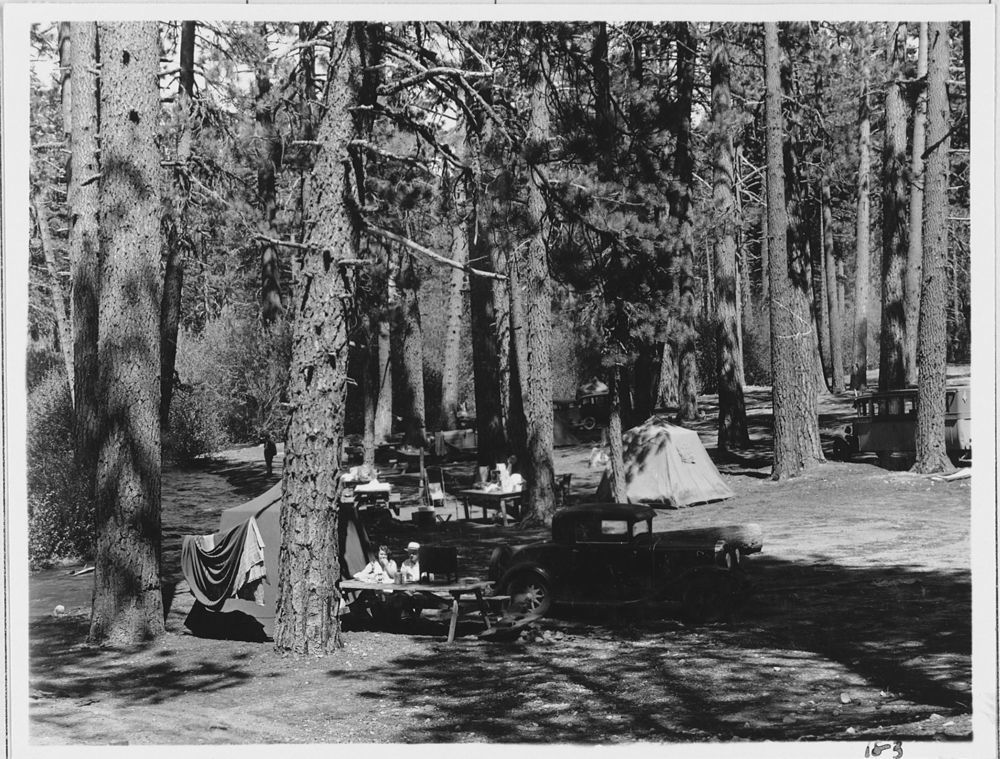 Administrative Collections: Album 2-Visitors in camp sites at Manzanita Lake campground.