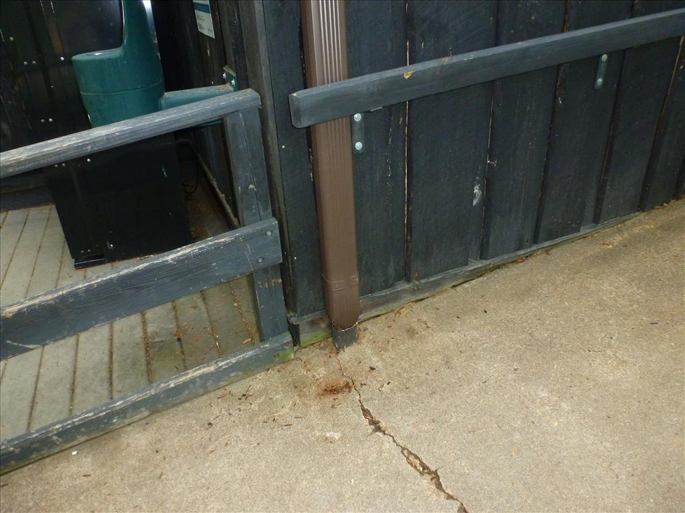 Gutter installation on north facing wall on entrance ramp