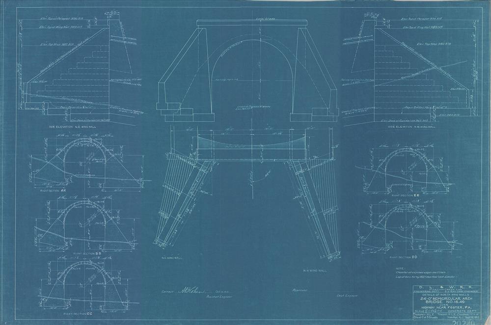 24-foot semicircular arch bridge no. 16.49 over highway--Details of north wing walls--Near Foster, PA [1912.09.16] Sheet no. 2 of 3