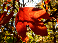 Sassafras leaves are one of the longer-lasting Fall color trees at Little River Canyon National Preserve - their one, two, or three-lobed leaves begin turning yellow in early Fall, then become orange and finally a brilliant red.