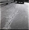 BW photos of rock slides in Kolob Canyons - 2x2. Ranger with camera reaching into crack in the road. ; ZION Museum and Archives Image 107_06_23012 ; ZION 15933