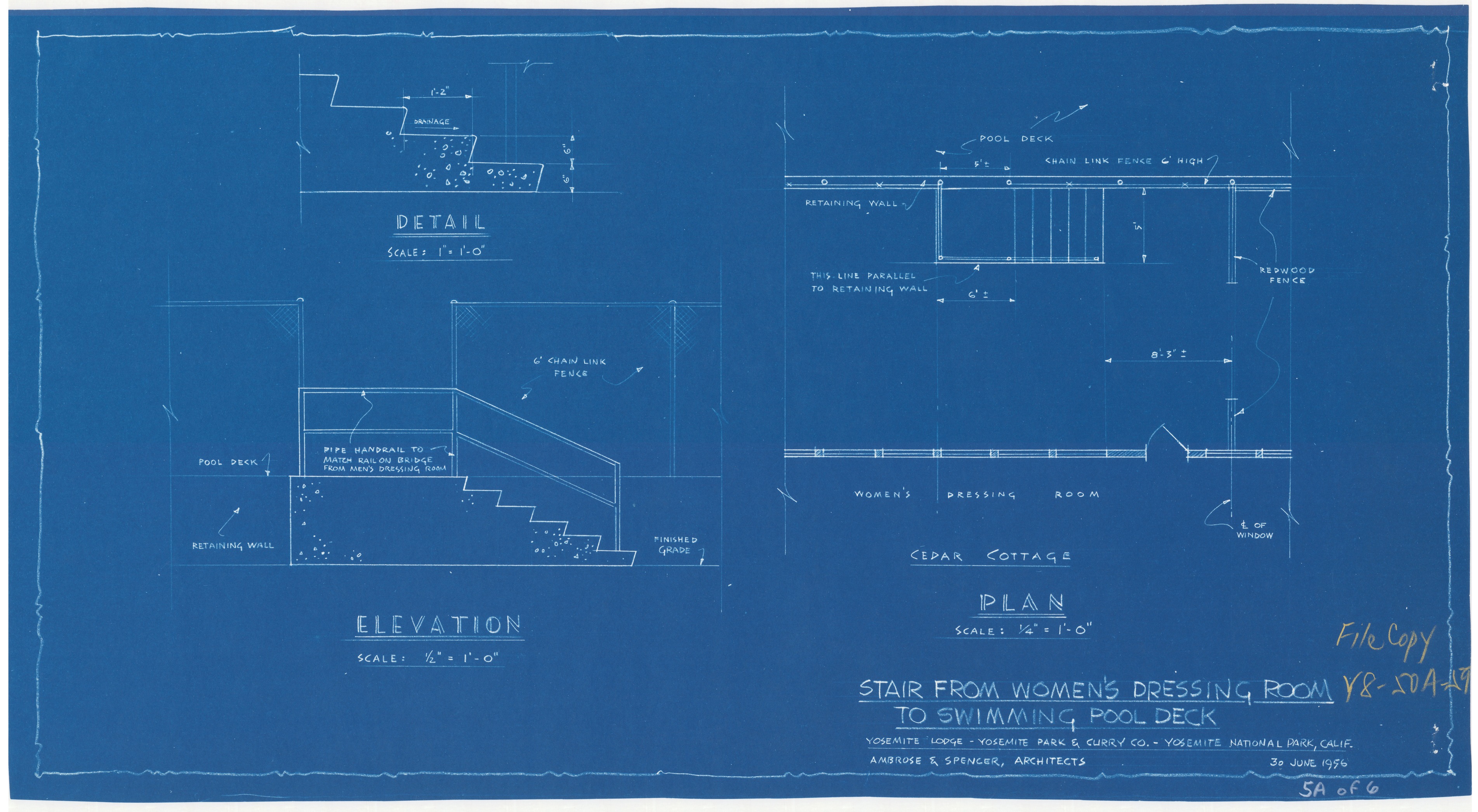 details, elevations and plans for stairway at Yosemite Lodge