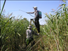 Initial treatment of invasive species present on the raised fen using a ladder and back pack sprayer. -