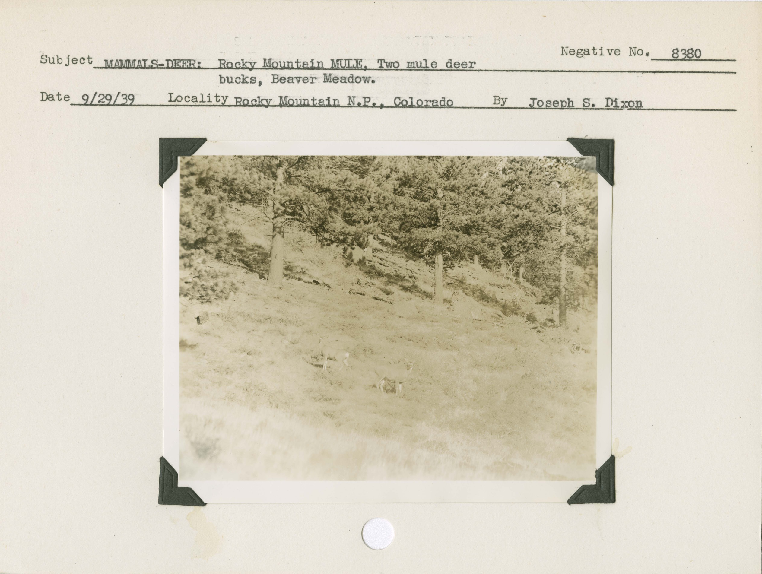 Deer, Rocky Mountain Mule: Two mule deer bucks, Beaver Meadow. Negative #: 8380. Locality: Rocky Mountain National Park, Colorado.