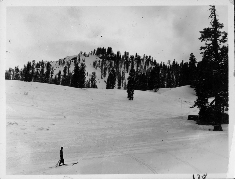 Arthur G. Holmes Collection Album 5: Edith skiing near Southwest Entrance Station