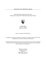 Transcript of oral history interview of Cindy Morton Darr, deputy chief of exhibits at Harpers Ferry Center.