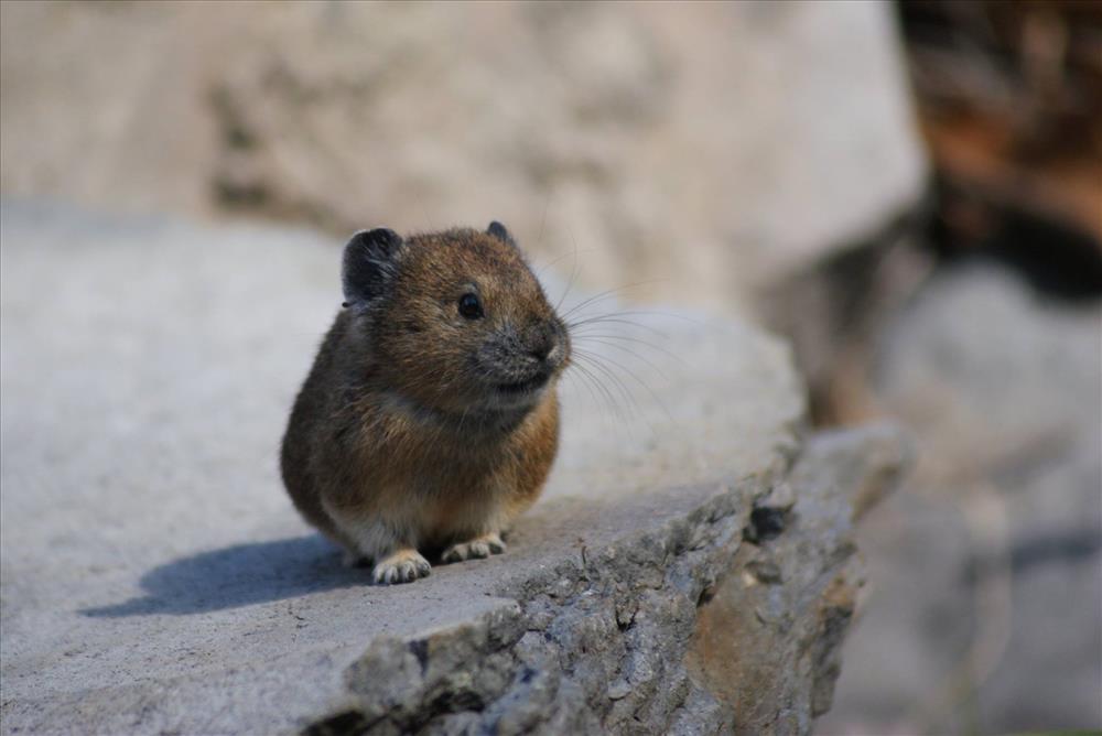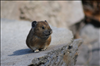 The American pika (Ochotona princeps) is a small, herbivorous relative of rabbits and hares. This little mammal is recognizable by its small, round, ovate body but also, and perhaps mostly, because of its moderately-large suborbicular (i.e., approximately circular) ears that are hairy on both surfaces.