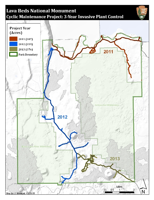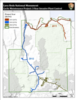 Map illustrating 3-year cyclic invasive weed management project