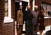 Pete Murphy, Dr. Payne, Dr. Grosvenor, and Mrs. Grosvenor posing for a photo outside a building.