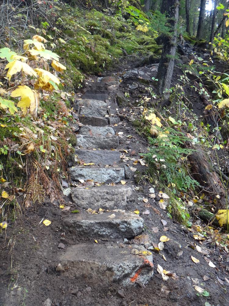 NPS day labor was able to reconstruct the entire final staircase on Saintly Hill with rock, which will make a much longer lasting, low maintenance structure. All work was done in 2012.