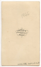 Back of a carte-de-visite. On the front is a portrait of Henry Wadsworth Longfellow. Head and shoulders visible against blank background. He is at three-quarter view to his left. Inscription: "1866" written in pencil verso. Photographer stamp includes "J.W. Black / 173 Washington St. / Boston." Notes: C1866. Henry Wadsworth Longfellow beard not yet completely white, and his clothing is similar to that of other C1865 portraits. The 1875 date appears slightly too late. Associated Materials: 3007-1-2-1-28 to -33 are identical carte-de-visites.
