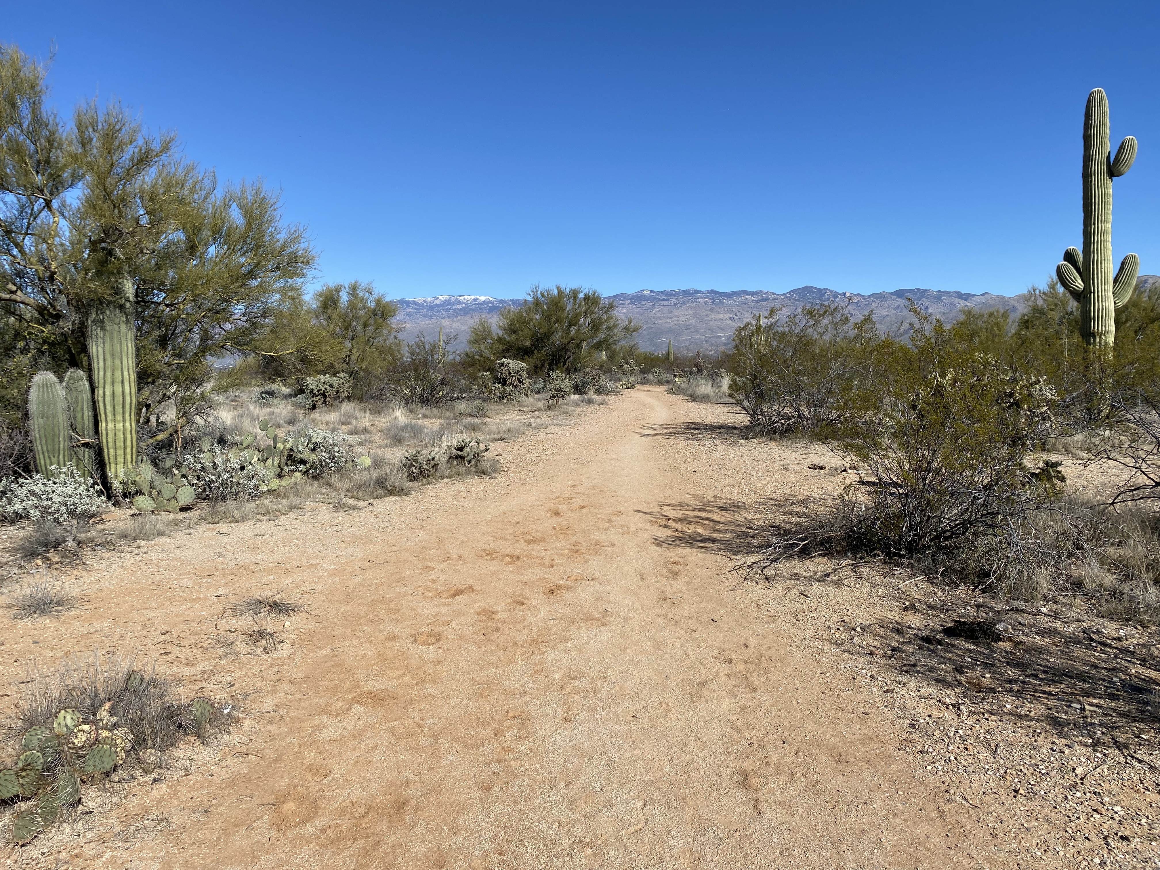 Wide trail with a view of the Catalina mountains in the background