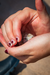 A close-up photograph of hands gently holding a small plover chick with the birds face partially visible inside the cupped hands.