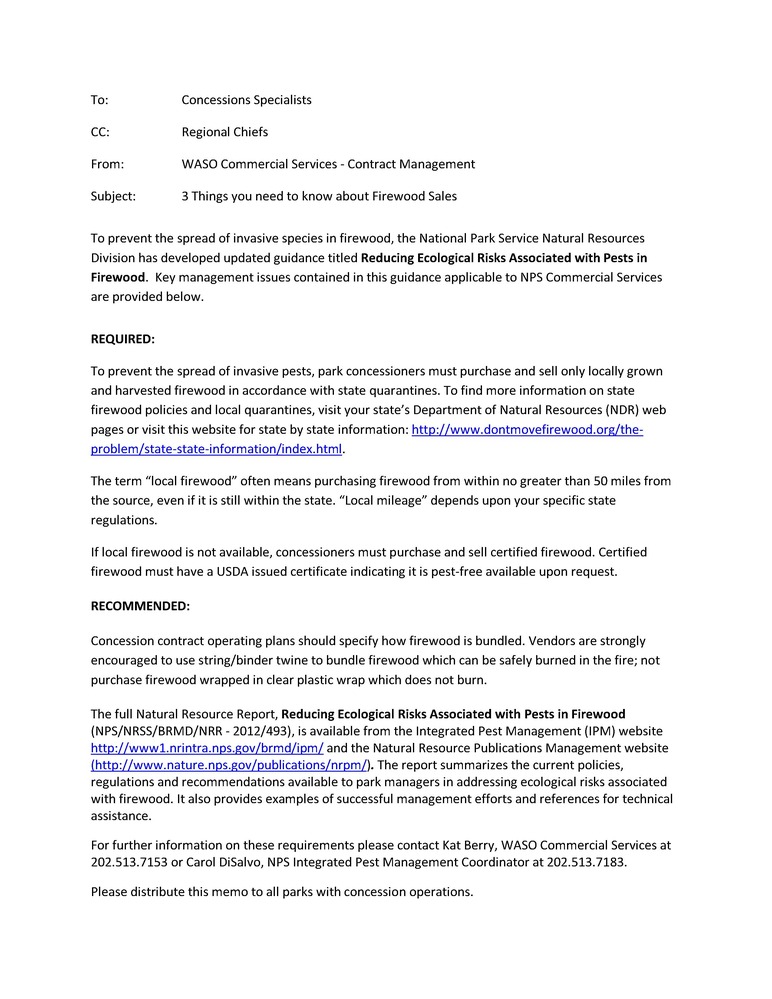 To prevent the spread of invasive species in firewood, the National Park Service Natural Resources Division has developed updated guidance titled Reducing Ecological Risks Associated with Pests in Firewood.