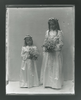 Priscilla on the left and Erica on the right. A lighter background than image #165. Notes: [June 1901] as the date given for a corresponding album picture. Joseph Gilbert Thorp Jr. wrote on the negatives box "Bridesmaids pictures many alike / Bridesmaids group."
