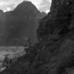 B&W negative of rock slide near Temple of Sinawava. [scratches, pits]
