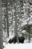 Bull moose browsing in spruce-fir forest near Soda Butte Creek;