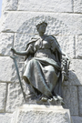 Monument is a 90' high obelisk of coursed, rock-faced granite resting on a 30' square podium. At base is a bronze statue of Peace on a separate granite platform.