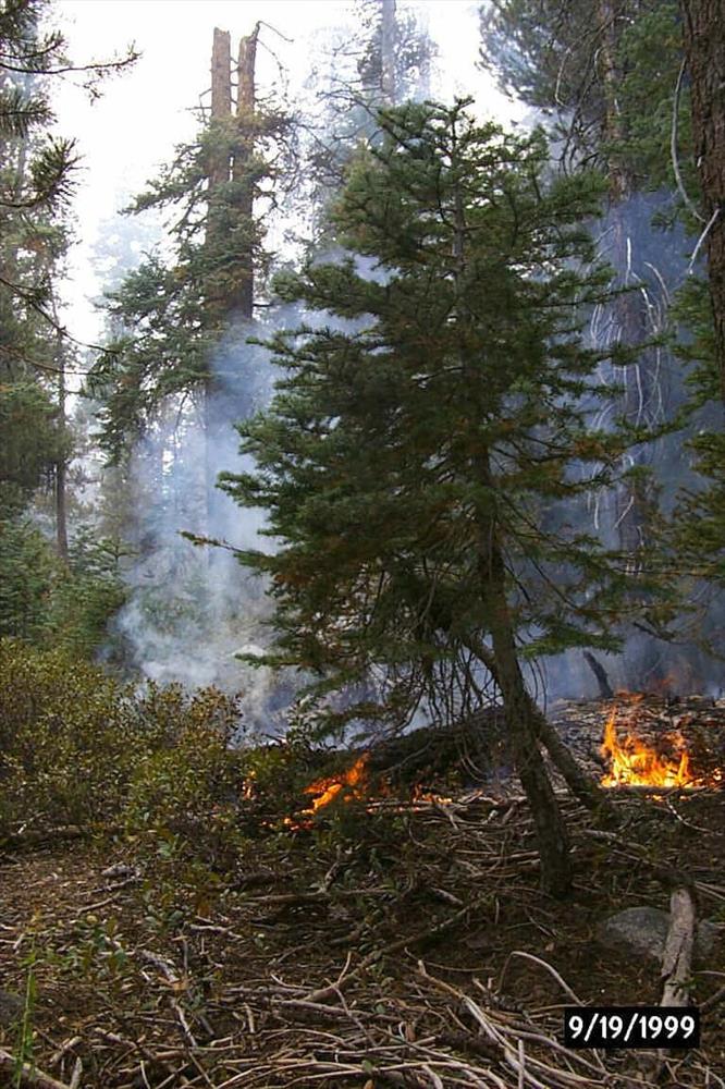 Dark Wildland Fire, July-September 1999, Yosemite National Park. This lightning-caused fire was managed as a natural fire, allowed to continue burning until extinguished by natural events such as rain, snow, or lack of fuel, while being managed by fire management personnel.