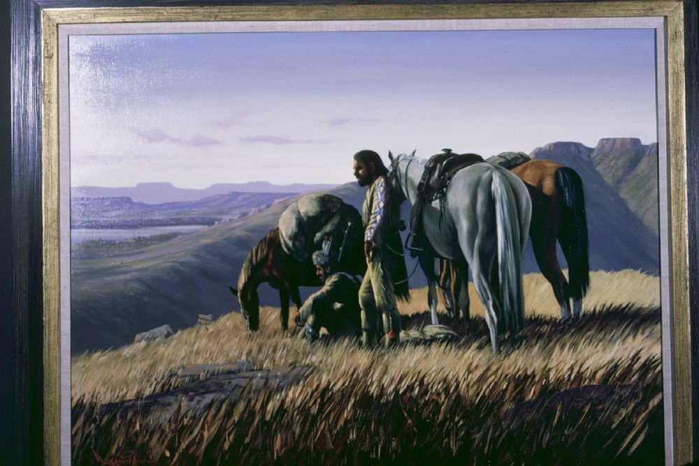 Trappers resting during their journey (painting by Kerswill).