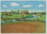 New England countryside showing a scene at the North Bridge in early April, 1775.