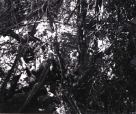 BW photo of a rock slide at the gateway to the narrows. ; ZION Museum and Archives Image 107_06_08012 ; ZION 15933