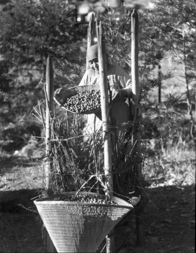 Making acorn cookies. Basket in Yosemite Museum c. 1930's.