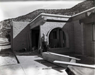 Man standing near entry way to Kolob Canyons Visitor Center during its construction. ; ZION Museum and Archives Image 800_23_03003 ; ZION 15933