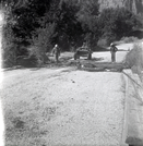 Road during construction and men working along the scenic canyon drive near the Grotto.