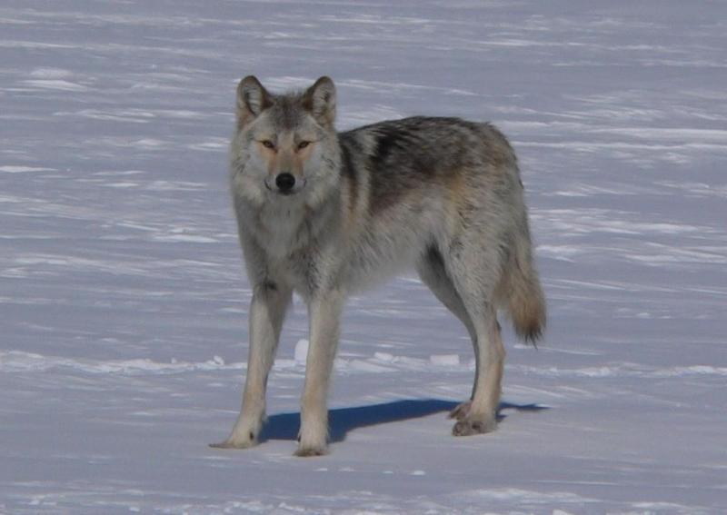 Gray wolf (Canis lupus) in the snow, Voyageurs National Park, 2015.