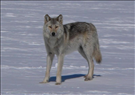 The gray wolf, or timber wolf, is a canid native to the wilderness of North America and Eurasia. It is the largest extant member of its family. There are about 6-8 wolf packs with a total of 35-45 wolves in the park. Lone wolves, like this one, make up about 15% of the total park population. They live a feast-and-famine lifestyle and may go days without food. When they do eat, they can digest up to 22 pounds of food at one time, though can survive on 5-6 lbs of meat per day.