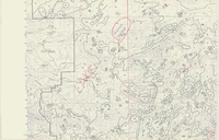 One section of a topographic map of Yosemite National Park featuring Tuolumne with red markings