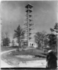 Black and white image of the Rix observatory with a visitor in the foreground.