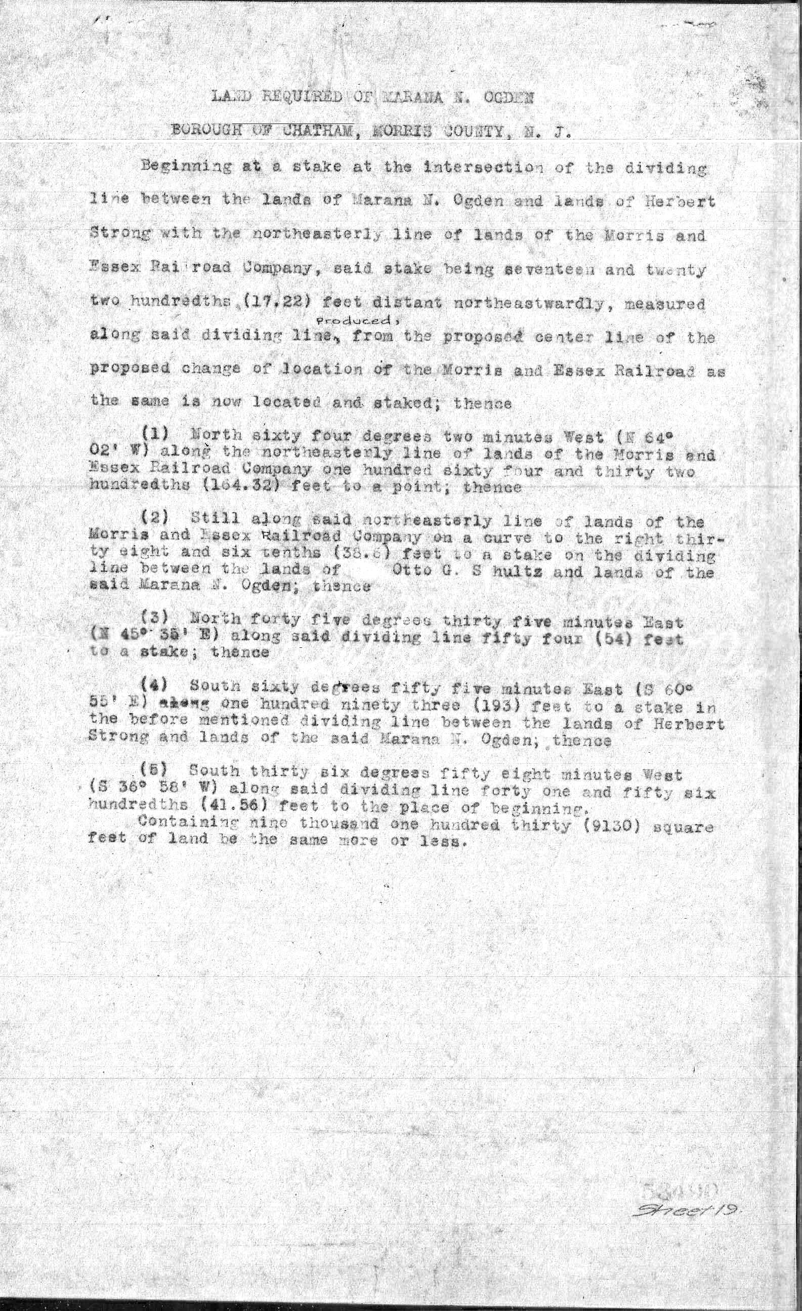 015 Land to be acquired from Marana N. Ogden--Chatham, NJ [1913.08.26] Land size is 9130 square feet.