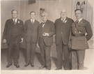 William Christian Heppenheimer, NJ Governor A. Harry Moore, Thomas Edison, Tim McCarter, and unidentified man at opening ceremonies for the public service Kearny Power Plant.