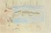 Colored pencil drawing of a prehistoric alligator-like creature in a lake swimming toward a small school of fish. Trees and small animals are on the shore of the lake. Text includes Theodore Roosevelt National Park.