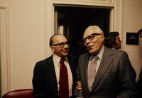 Two men talking during the P & E 40th convocation ceremony.