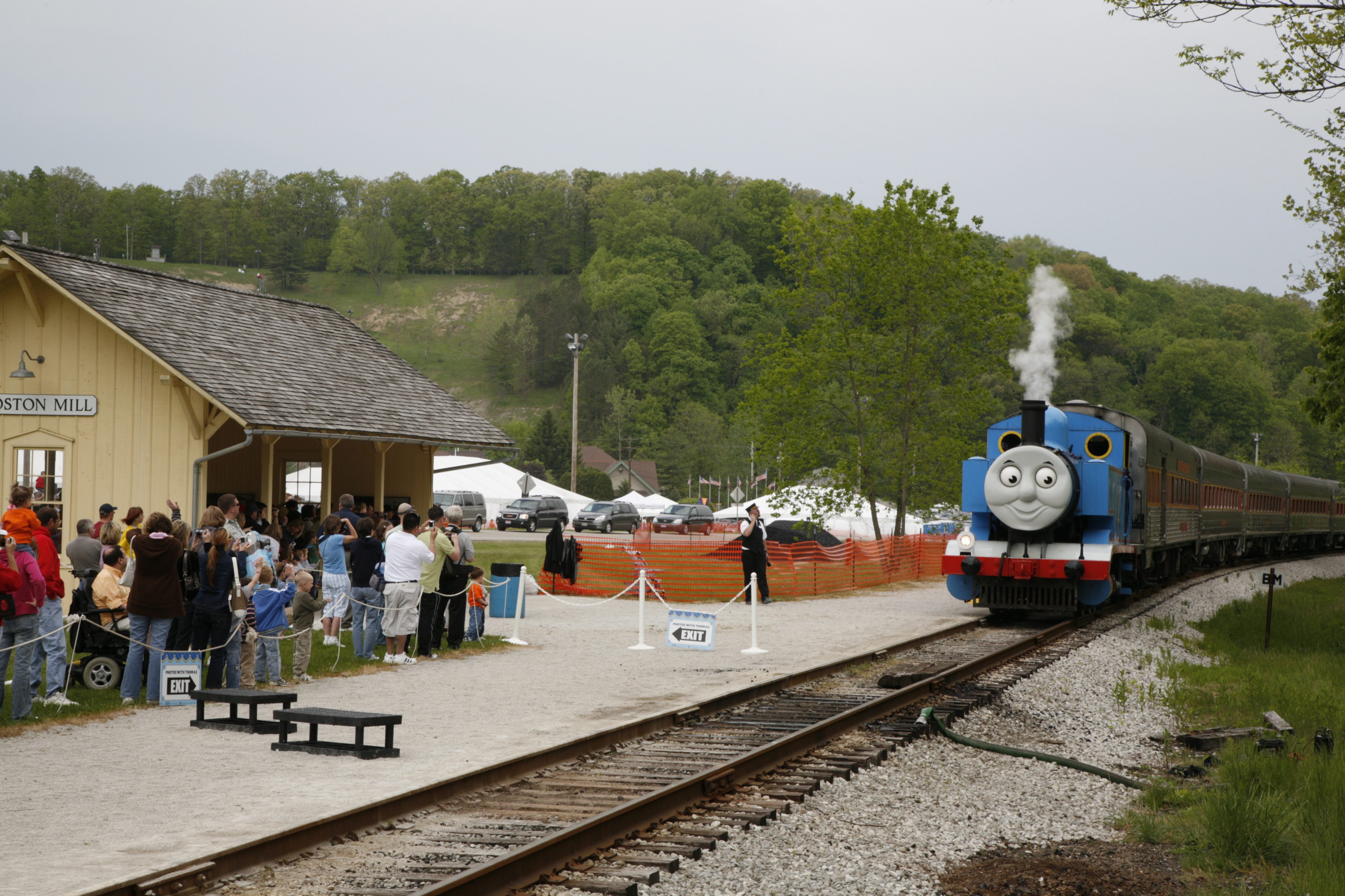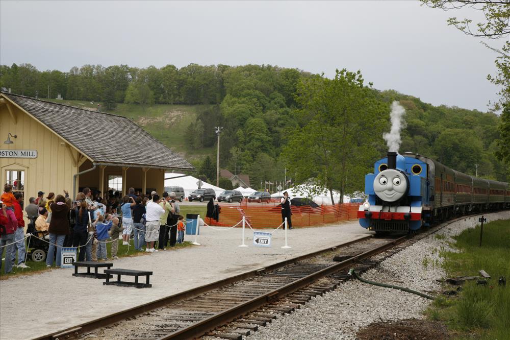 "A Day Out With Thomas" is an annual event in late May that draws approximately 20,000 visitors to the national park. Families with young children enjoy a 25-minute train ride with Thomas the Tank Engine as well as a variety of other fun activities related to the classic British series. Here Thomas arrives at Boston Mill Station to an eager crowd of fans.