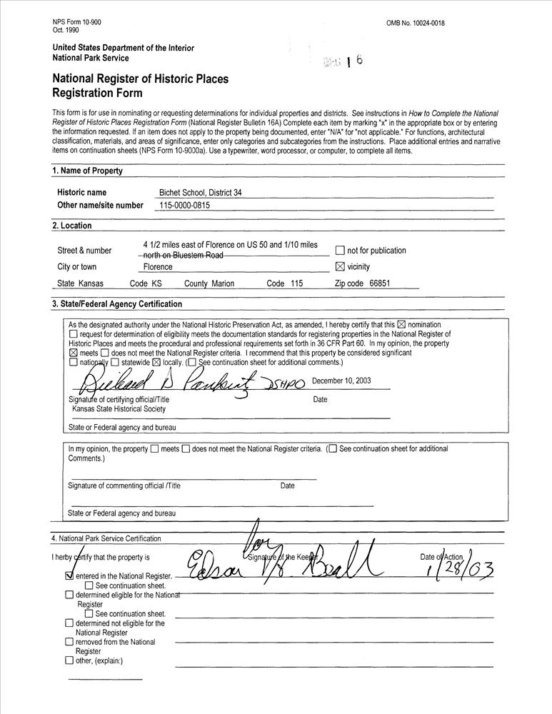 Florence ; 4.5 mi. E of Florence on US 50 and 1/10 mi. N of Bluestem Rd.