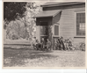 Henry Ford, Thomas Edison, and Harvey Firestone sitting on the stoop of the Fort Myers lab.